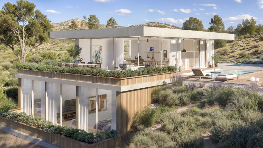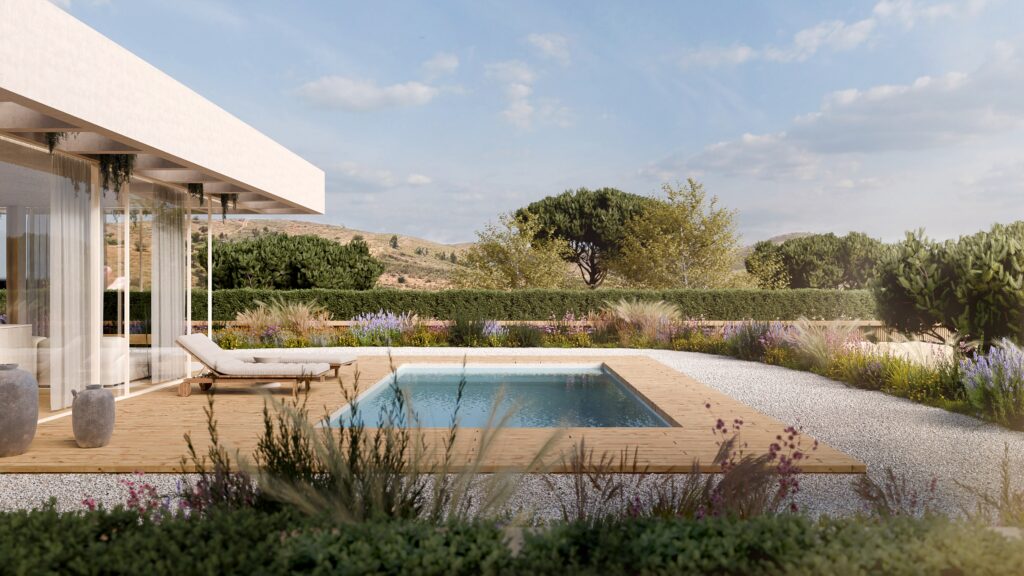 Modern style 1+1 bedroom villa in picturesque nature of Silves, overlooking mountains. 5min drive from the city center. Private heated pool. Communal gym, tennis, padel, restaurant, lounge, playground etc. Ready in 2028. 80m2 interior area, 477m2 plot. Energy rating A+ /Ref. V895