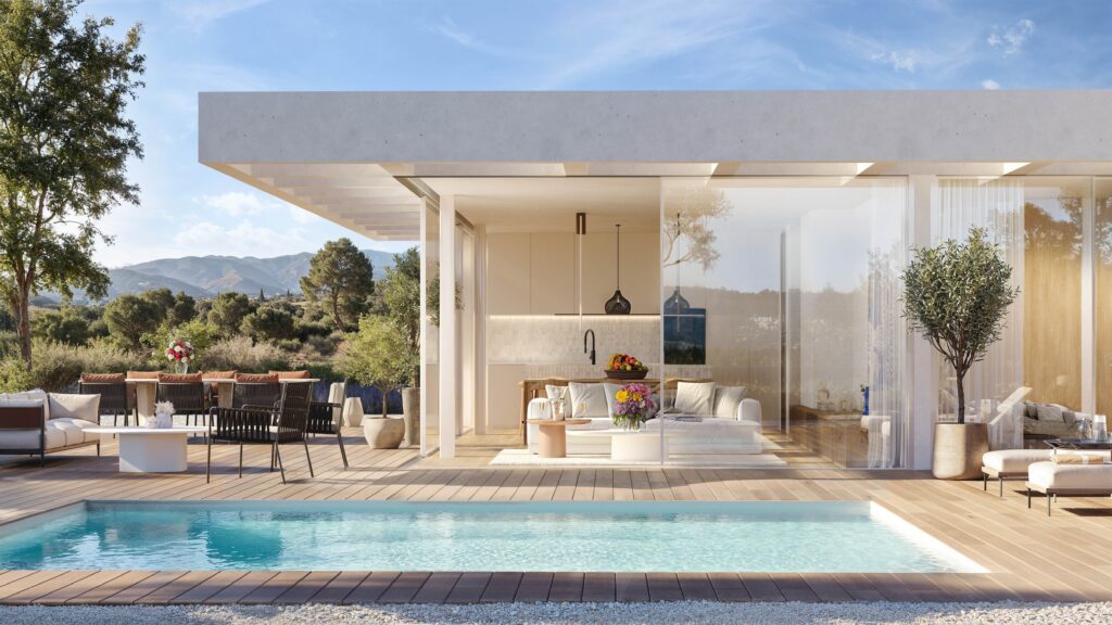 Luxurious 4-bedroom villa with heated pool, garage and fantastic views to the golf. Large garden and underfloor heating. Built in 2023. 719m2 land, 210m2 internal area. Energy rating A / Ref. V972